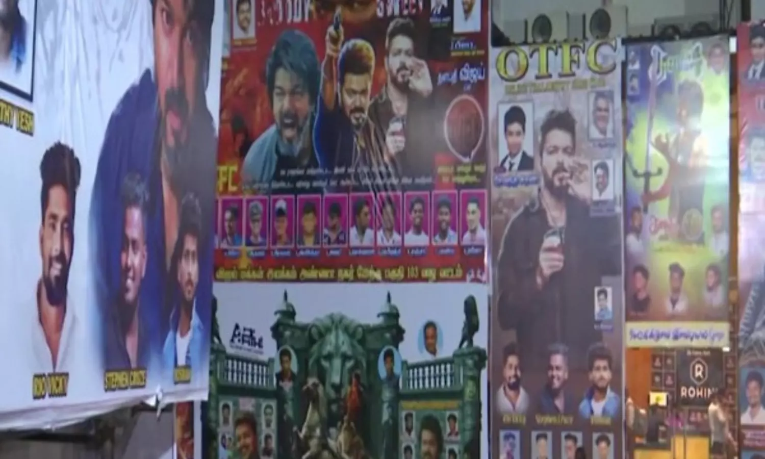 Vijay fans gather outside theatre in Chennai day before release of film 'Leo'