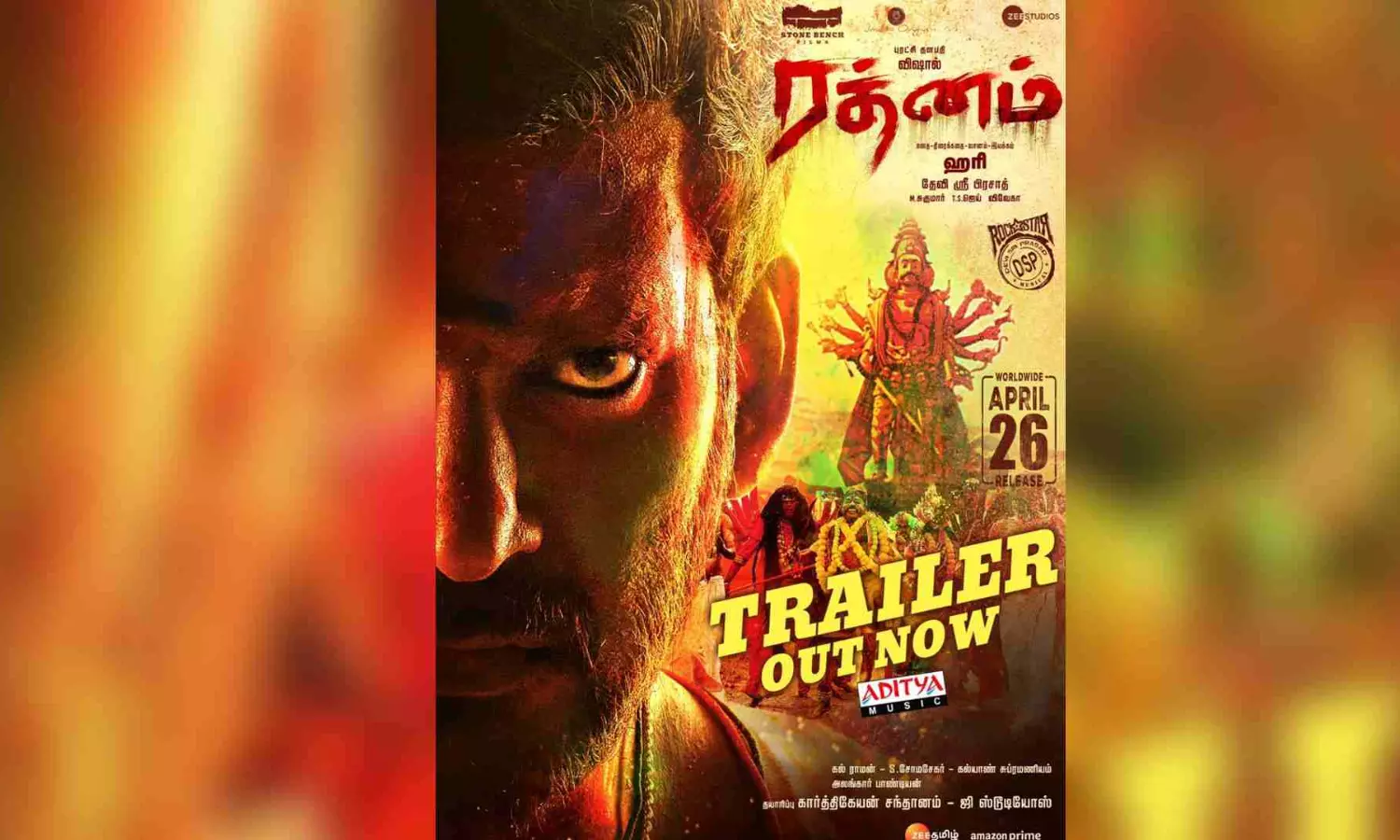 The film is bankrolled by Kaarthekeyen Santhanam and Zee Studios. Sharing the link to the Tamil and Telugu trailers, the makers wrote, “Presenting the blasting action trailer of #Rathnam in theatres on APRIL 26TH! Starring Puratchi Thalapathy @VishalKOfficial. A film by #Hari. A @ThisisDSP musical (sic).”