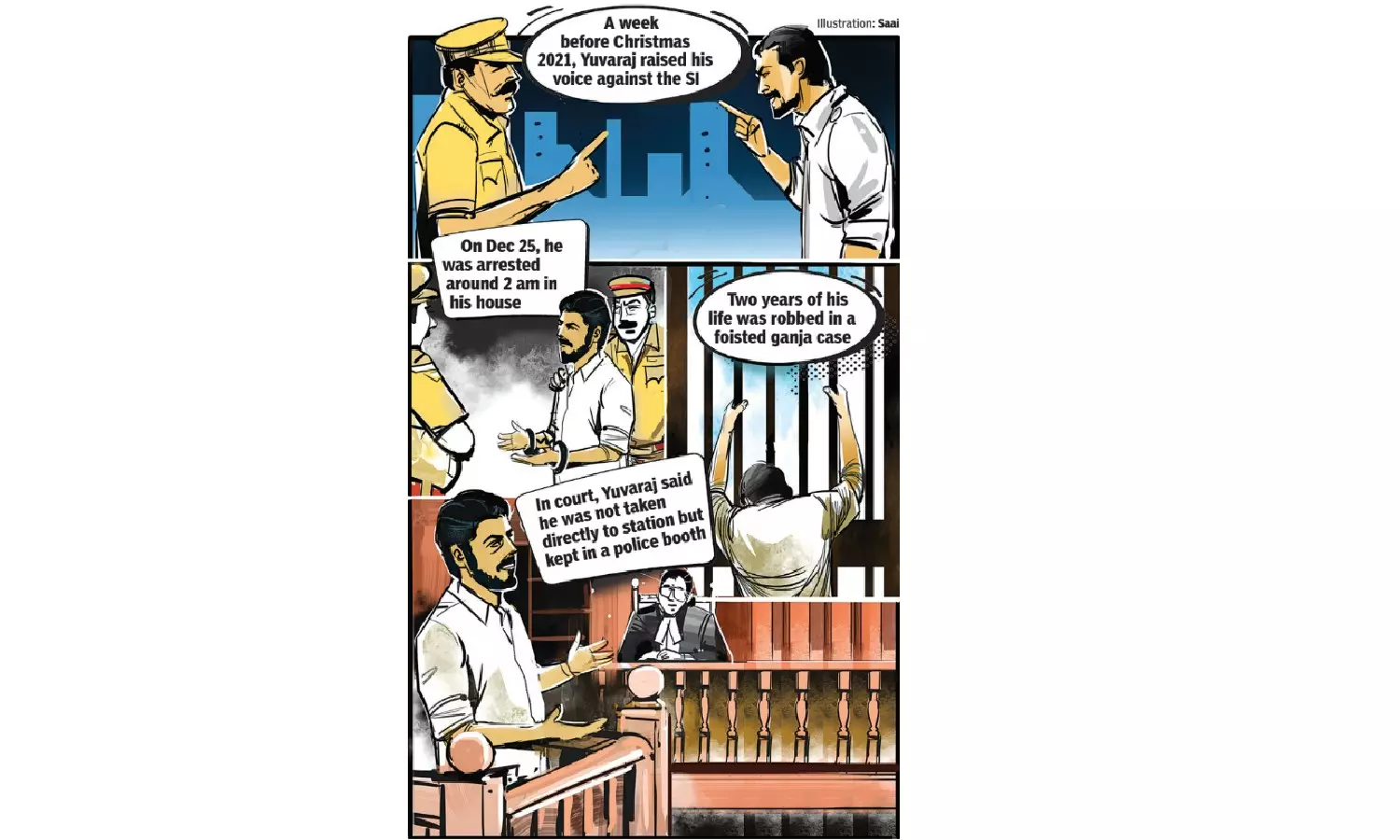 All because a sub-inspector with Perumbakkam station was upset that M Yuvaraj (28) had raised his voice against him during a routine vehicle check two years ago.