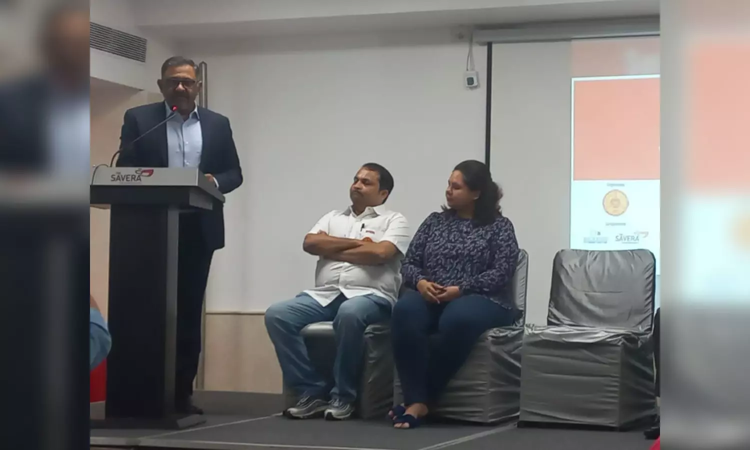 Balasubramanian Sankaranarayanan, President & CEO, Thryve Digital Health speaking at the press conference in Chennai. (Photo credit: Nitin Vignesh)