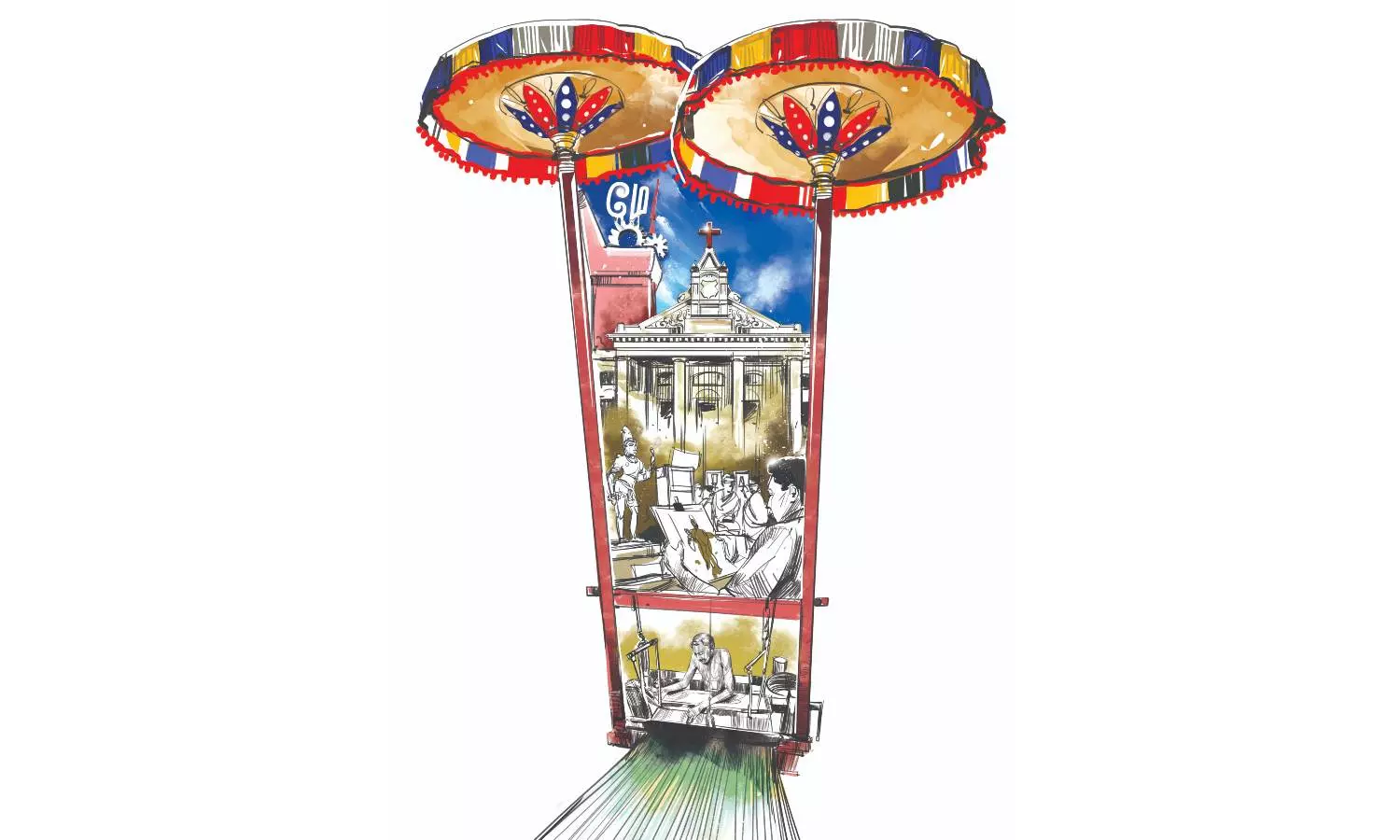 Huge and ornate umbrellas for the gods, especially those for Tirupati, have been made in Ayyasamy street of Chinthadripet. The ultra-big parasols were traditionally made by 20 Saurastrian families. Though partially stitched with machines these days, it’s still essentially an elaborate handcrafted process. Frames of bamboo or cane, and handles of teak, cloth and lace are the raw materials used to fashion a parasol, which would shield the idol during the procession. The parasols are of different sizes, but height varies from 4.5 feet to 18 feet. Each one is designed keeping in mind the deity it will be used for, especially the motifs. The busiest time is usually prior to the bramhotsavam at Tirupati. The dispatch of the umbrellas to Tirupati is a day-long function in Black town. And now, since these parasols are exported to a plethora of Hindu temples across the world, the artisans have work throughout the year.