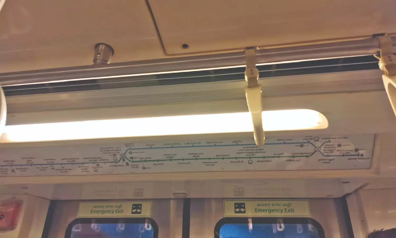 Dysfunctional LED route map on Chennai Metro train