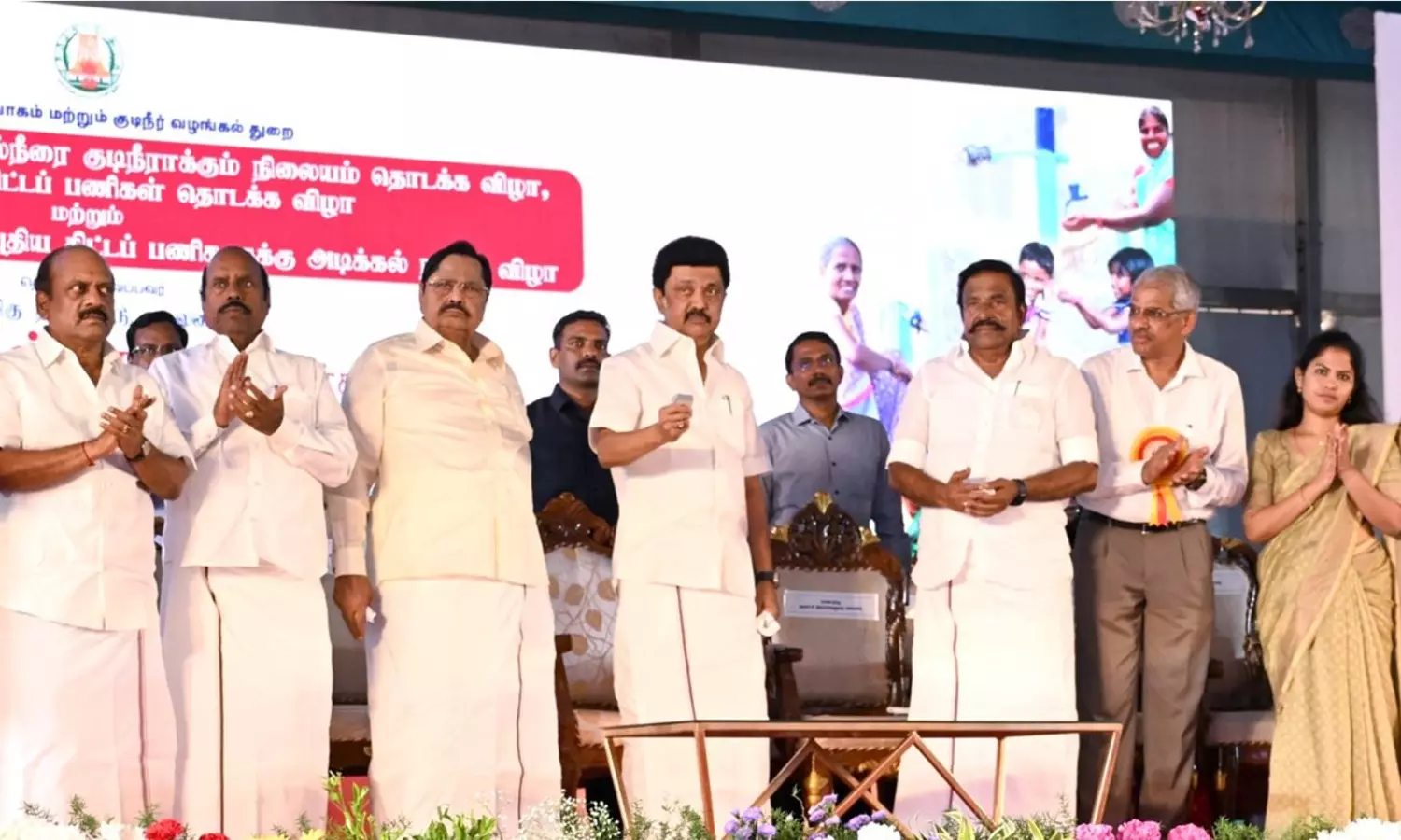 The Chief Minister has inaugurated 7 completed projects at a total cost of Rs 129.50 crore by the CMWSSB. Also, various projects have been completed in Tamil Nadu at Rs 533.11 crore including a 20.72 MLD sewage treatment plant in Tirupathur district at an estimated cost of Rs 217.13 crore.