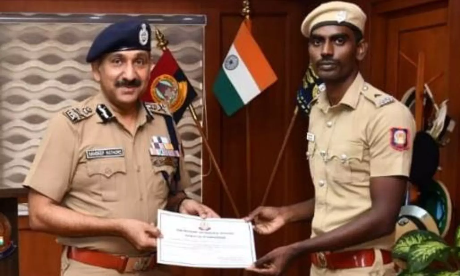 Commissioner Sandeep Rai Rathore, Grade-II Police constable P Vignesh Pandi