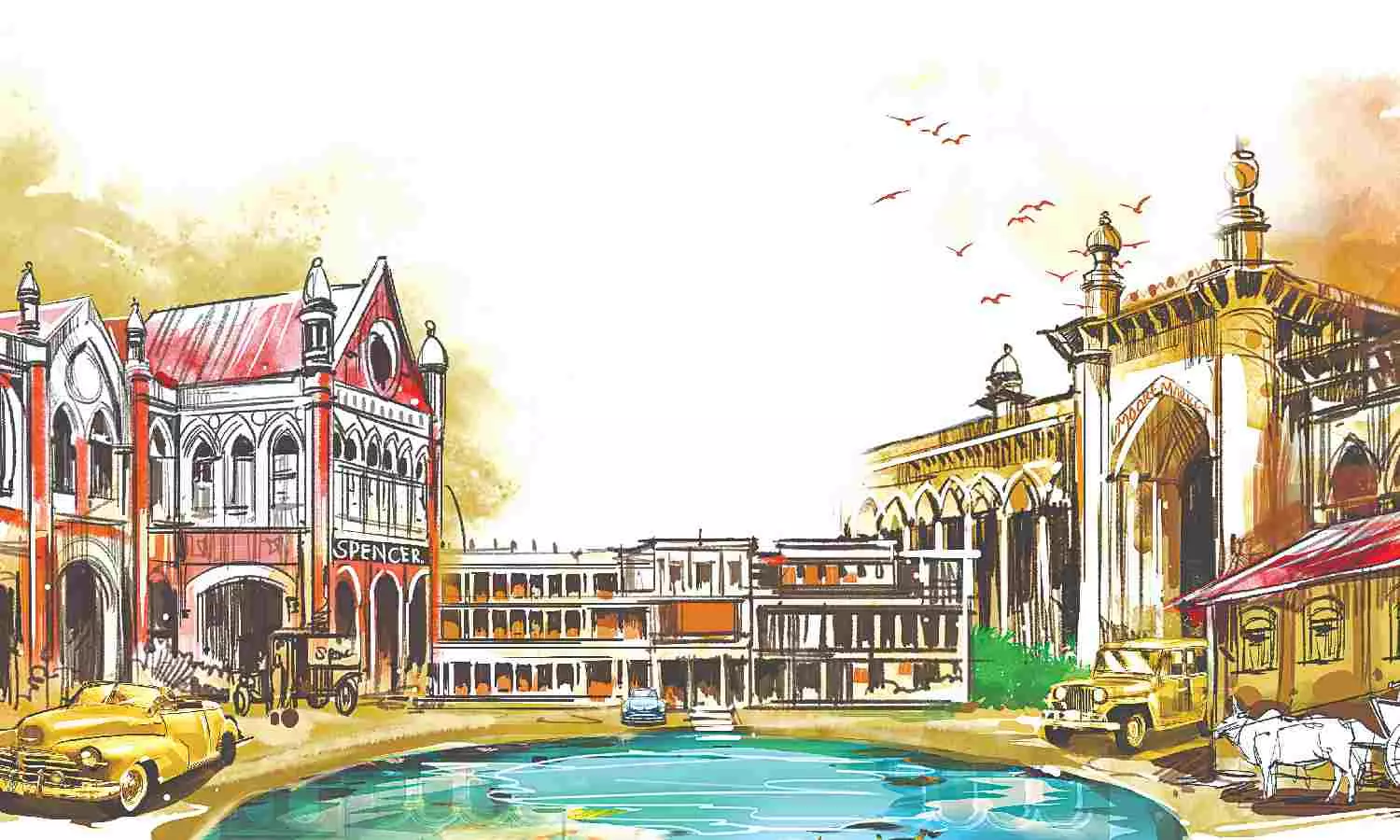 Madras was becoming a prosperous city, and shopping became an essential aspect of people’s lives. Charles Durant and JW Spencer established Spencer on Mount Road in 1863. In 1895, it was the first department store in the Indian subcontinent — a fantastic seller of such a diverse range of goods that one was astounded by the amount and variety. The store contained over 80 separate departments, ranging from cars to candles, and was designed by WN Pogson in the Indo-Saracenic style of architecture. But it was an old-fashioned-hard-to-maintain building on a large plot of 10 acres. It was destroyed by fire in 1983. The current Spencer Plaza was constructed on the same site.