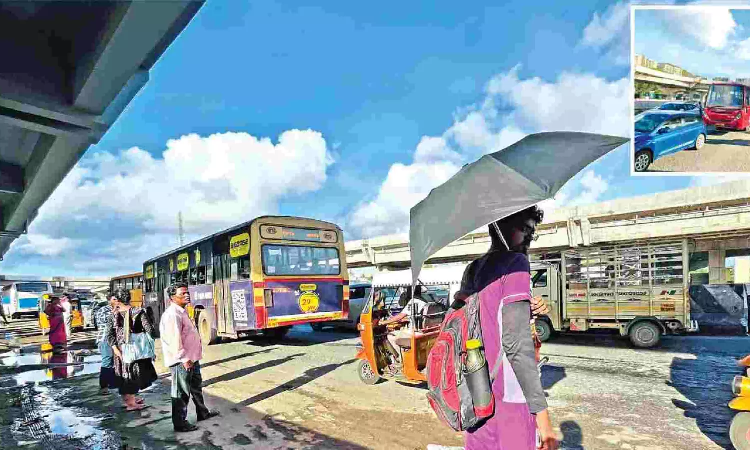 Commuters in Perungalathur waiting for the bus towards the end of a flyover