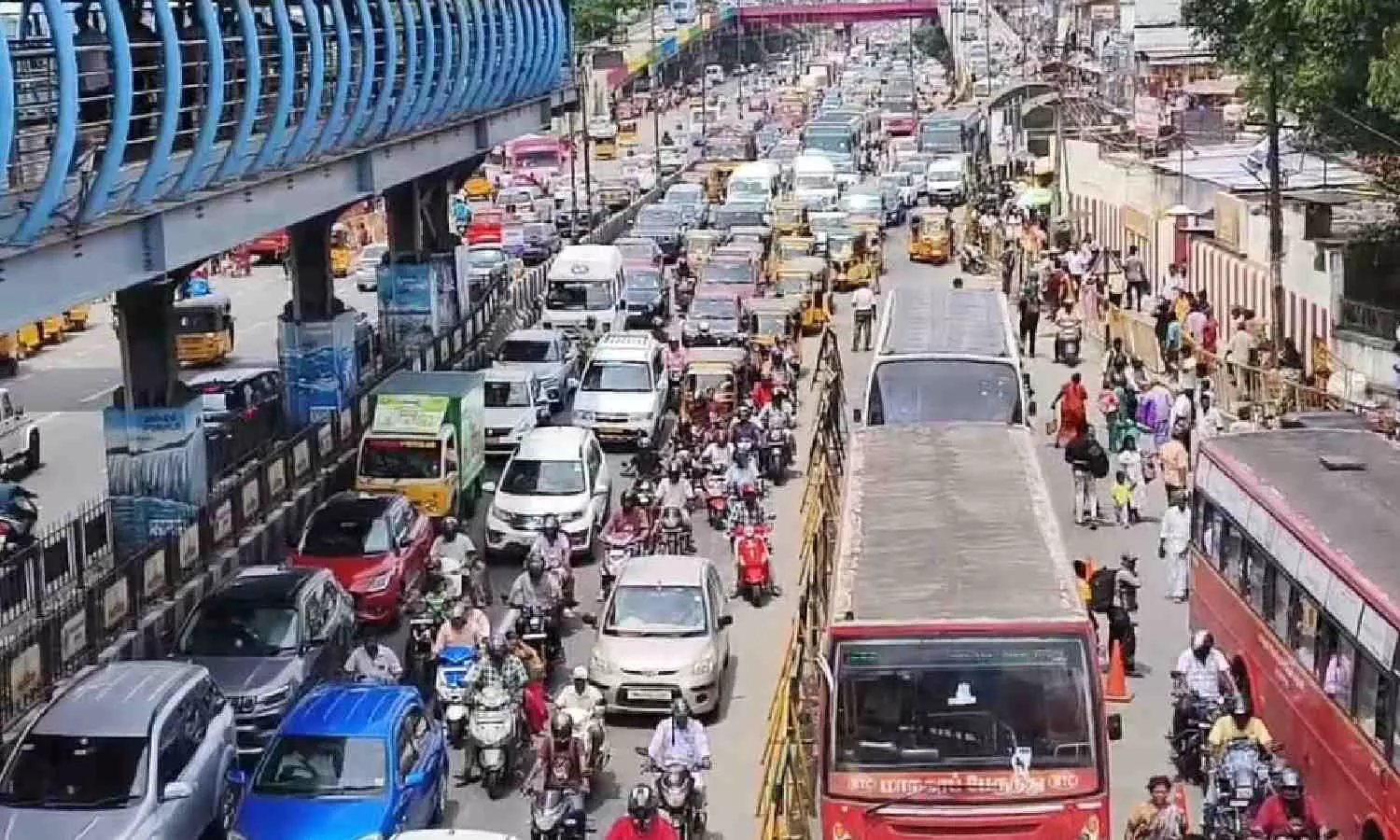 Massive traffic congestion at Tambaram - GST Road amid electric trains cancellation
