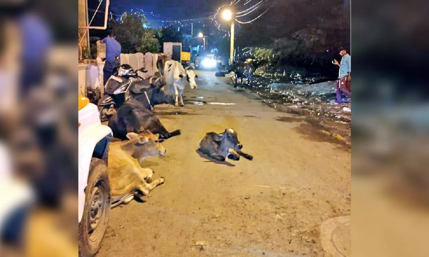 Residents rue lack of action on part of the corporation authorities, despite raising multiple complaints. “It has become a perennial issue, especially at nighttime. Those driving a vehicle find it hard to differentiate between the road and the lying cattle,” said R Vinod, a commuter.