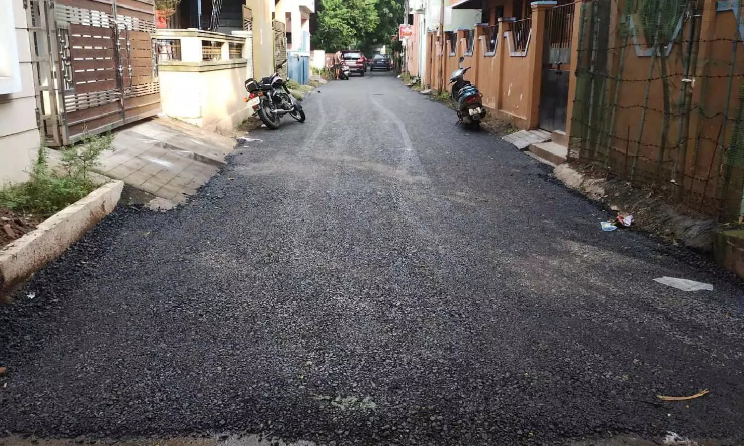 When contacted a senior official at Thiru Vi Ka Nagar zonal office explained that the milling and road has been re-laid as the same in the existing road. Also, the road slope is towards the main road and will not inundate the houses in the area.