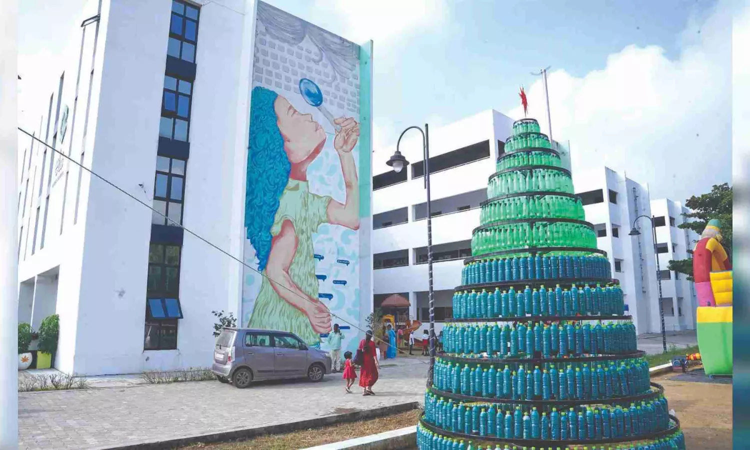 CHENNAI: Students at Ela Green School inMaraimalai Nagar are marching towards sustainability this Christmas by creating a 16 ft. tall Christmas tree using approximately 1000 recycled plastic bottles of different sizes and colours. A team of 78 people, including students between the age group of 9 and 17, dedicated around 5 to 6 hours to this project.