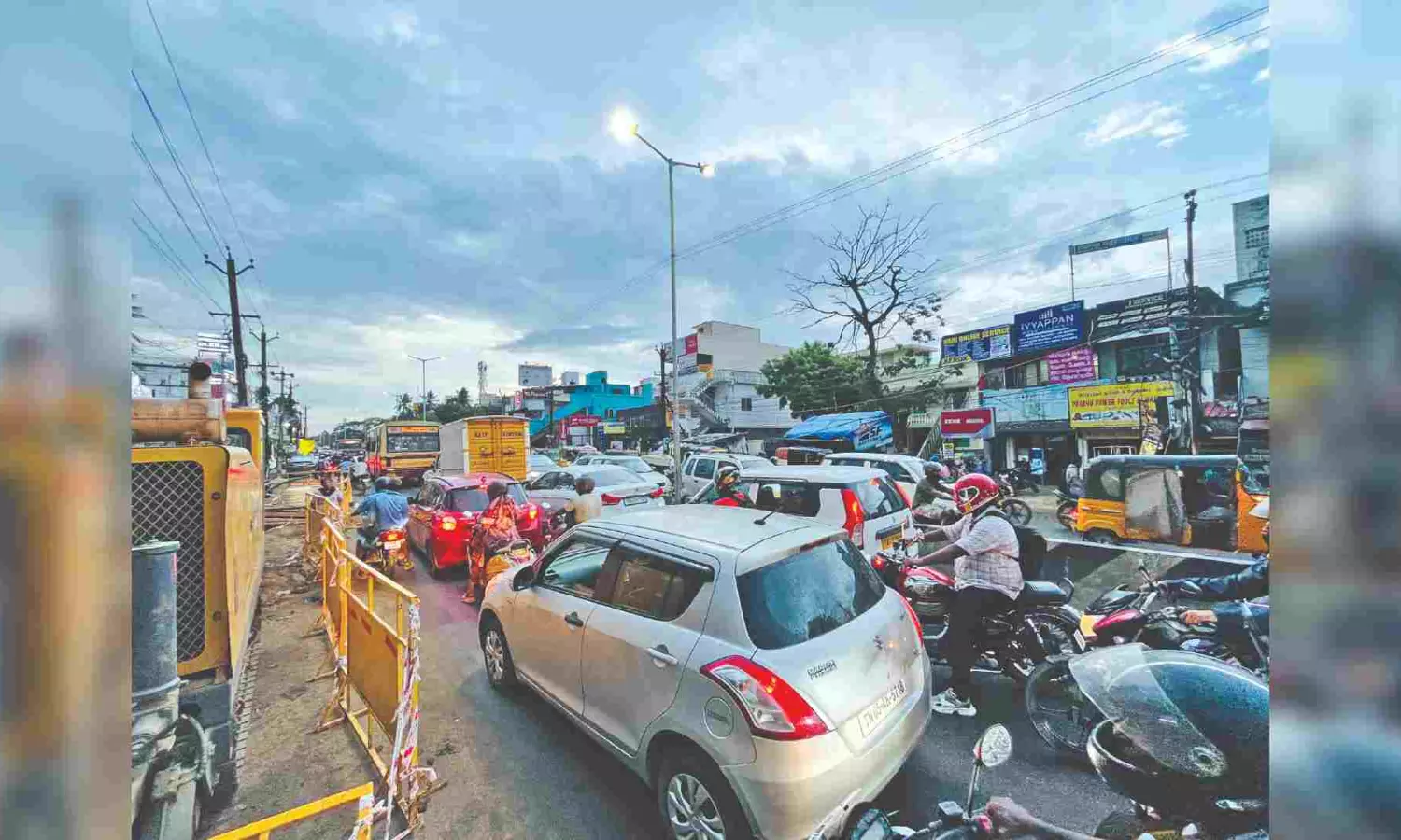 CHENNAI: People face hardships every day because of the traffic on the Tambaram-Velachery Road which is one of the busiest roads in the suburbs. The 16 km stretch has turned into a nightmare for the regular commuters.