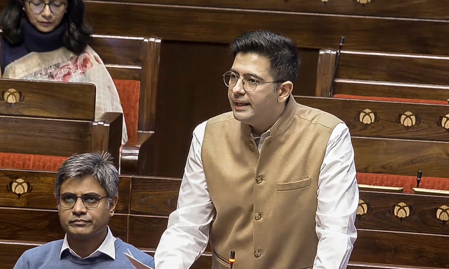 AAP MP Raghav Chadha during the Winter session of Parliament, in New Delhi, Monday, Dec. 8, 2025. (PTI)