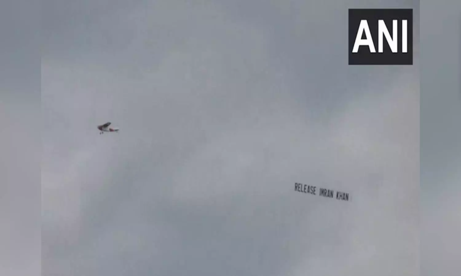 Aircraft carrying message 'Release Imran Khan' flies over stadium during IND v PAK match in New York