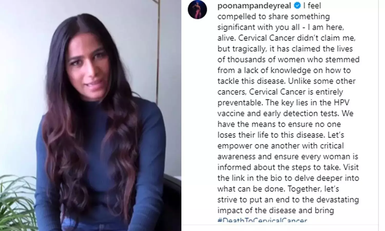 Poonam made headlines on Friday after a statement of her “demise” due to cervical cancer was shared on Instagram. A day later on Saturday, she shared a video claiming she “faked” her death to ignite a conversation on the topic of cervical cancer, which many agree was in bad taste.
