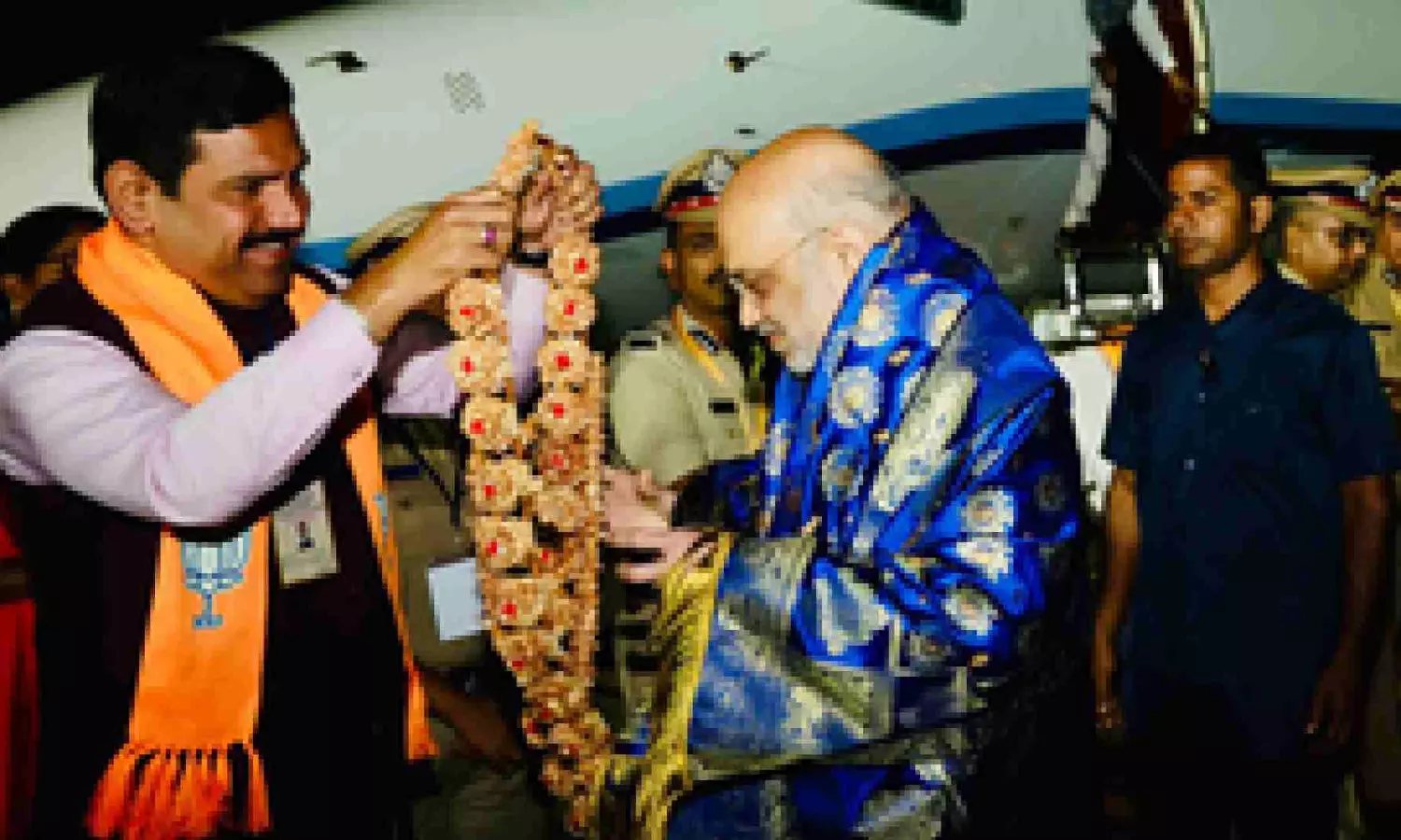 Shah reached the Mandakalli airport at 3 a.m. where State BJP President B.Y. Vijayendra welcomed him to the state.