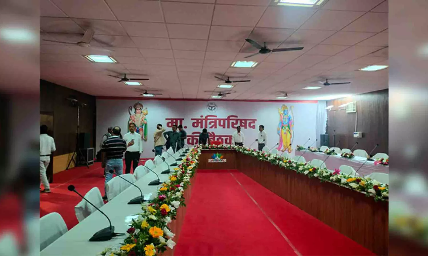 The cabinet meeting will be held in the Ram Katha Museum. The museum is being decorated grandly. Posters of Lord Shri Ram and Lord Hanuman have been put up in the cabinet meeting hall.