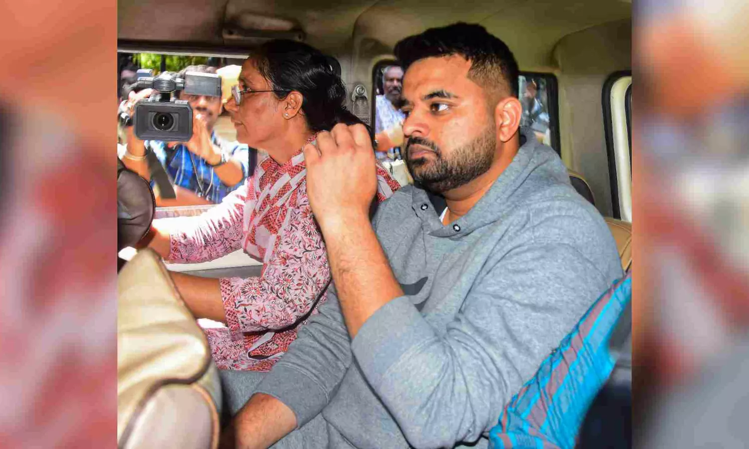 Suspended JD(S) MP Prajwal Revanna, facing allegations of sexually abusing several women, being taken to a hospital for medical examination under tight security, in Bengaluru, Friday, May 31, 2024 (Photo/PTI)