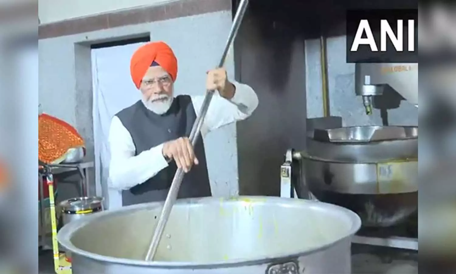 PM Modi was seen wearing a Sikh turban and he also served langer at Gurudwara Patna Sahib from a steel bucket.