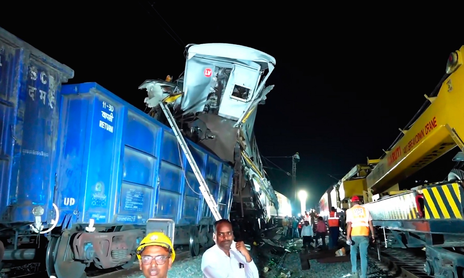 Rescue operations underway at Lal Khadan Torva Fatak after a MEMU local train collided with a stationary goods train between Gatora and Bilaspur stations, Bilaspur, Chhattisgarh (PTI)