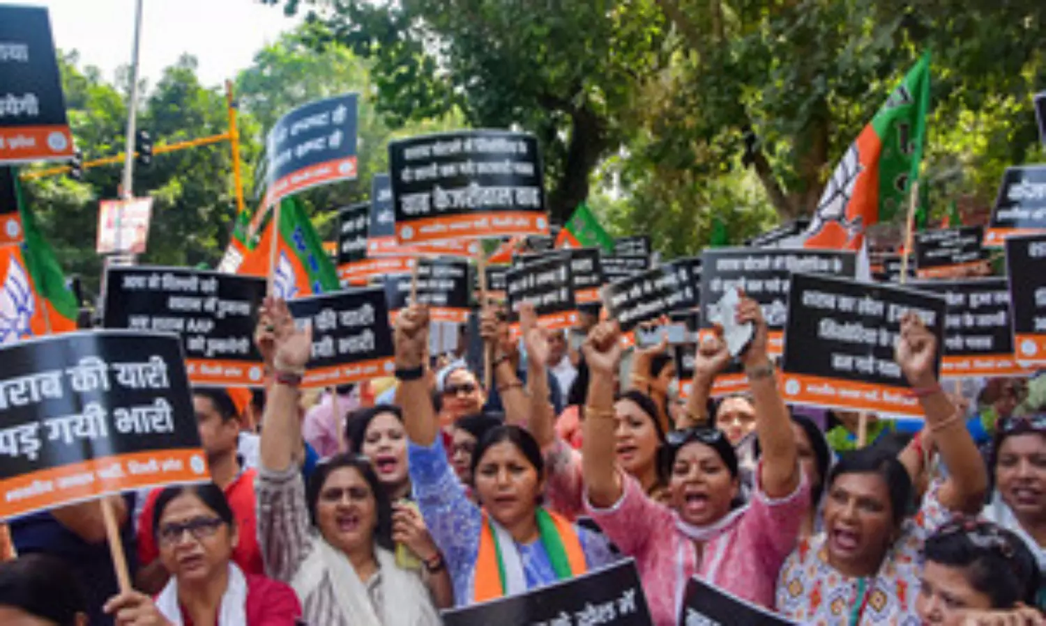 BJP leaders stage protest near AAP office, demand Delhi CM Kejriwal's resignation over liquor 'scam'