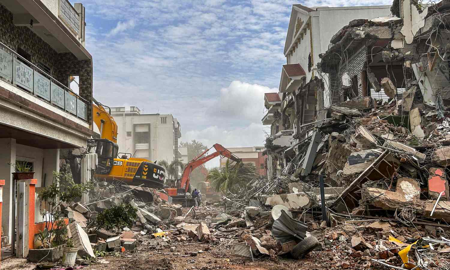 Civic authorities raze 36 illegal bungalows on bank of Indrayani river near Pune