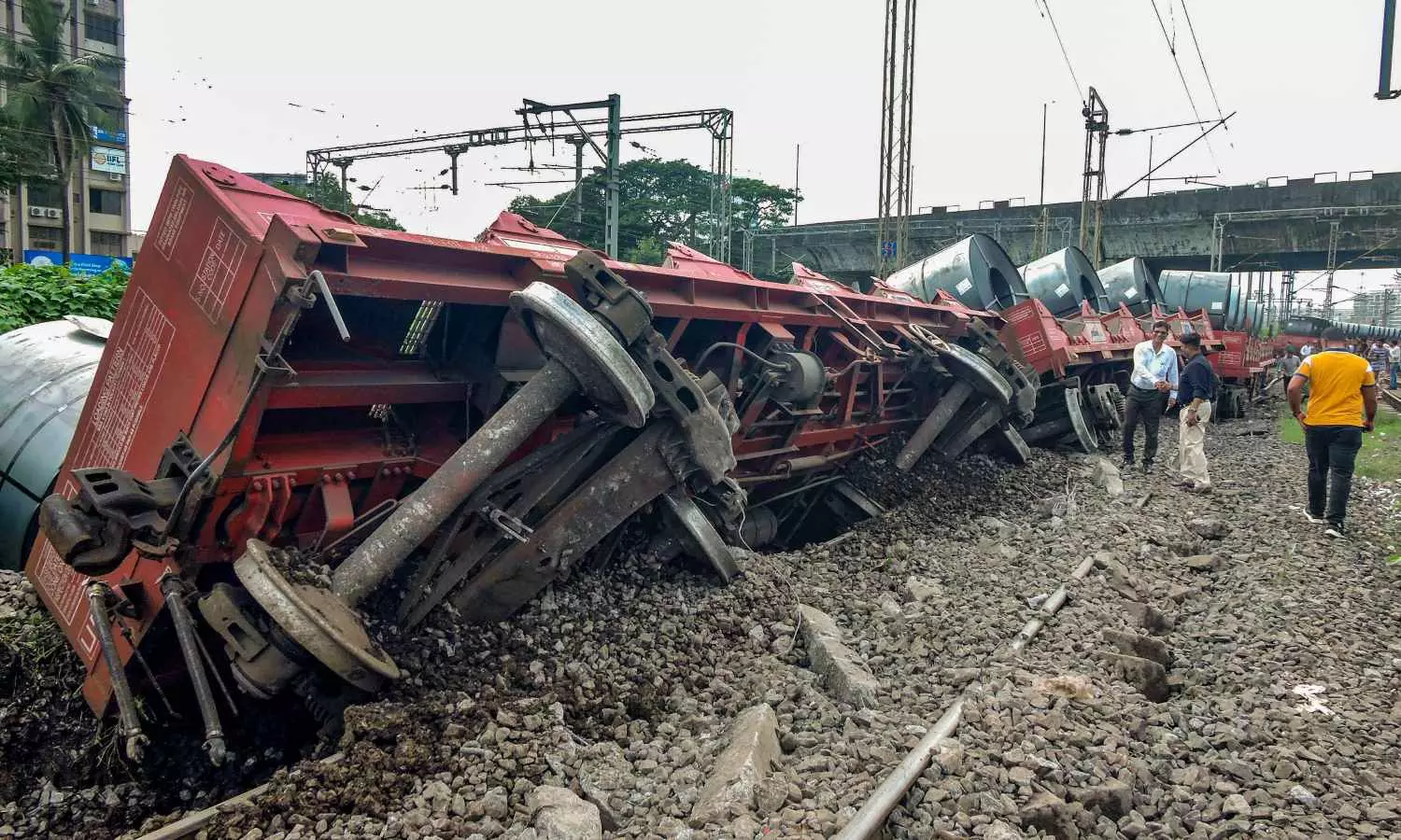 Four wagons of the goods train derailed on the Panvel-Kalamboli section of the Palghar district. (PTI)