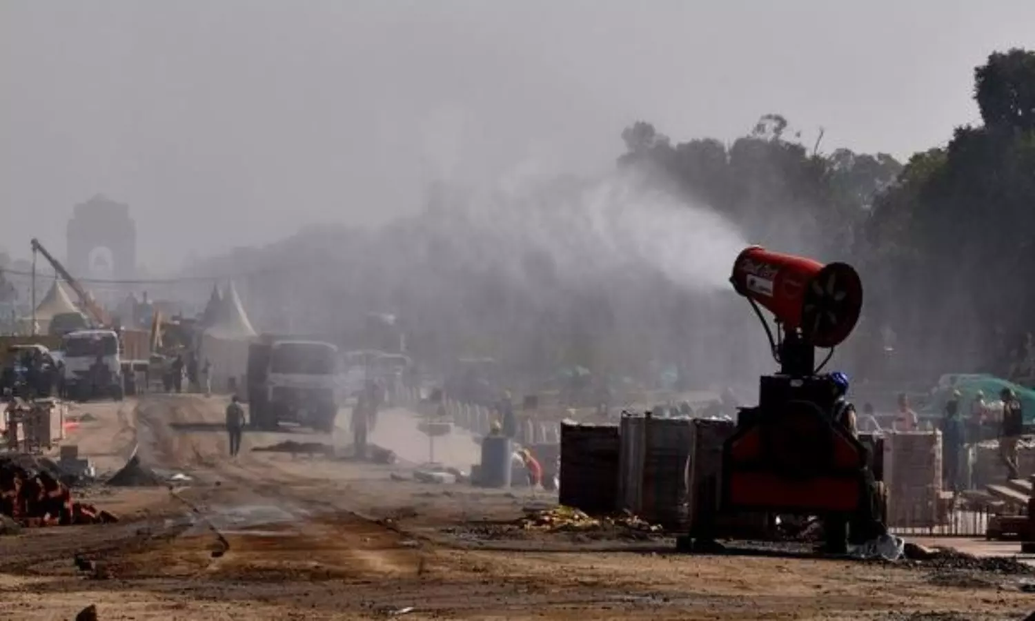 NEw DELHI: After the air quality in the national capital reached an all-time low and was recorded in the "very poor category" on Sunday afternoon, vehicle-mounted 'anti-smog guns' were used to spray water and reduce air pollution in the metropolitan city.