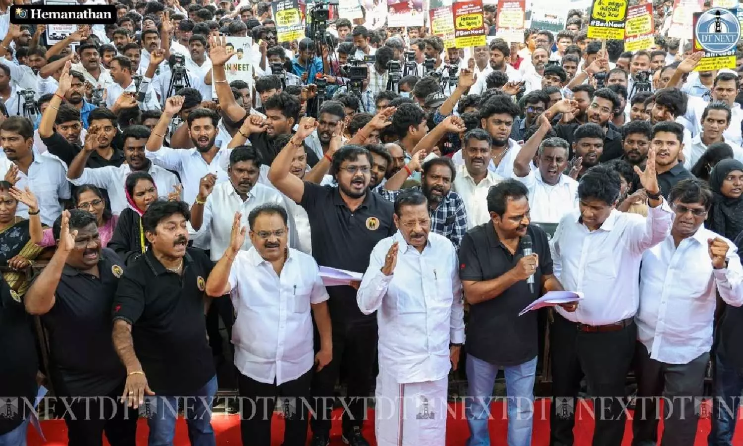 The protest, titled "No More NEET" was led by the party's Students Wing Secretary and Kancheepuram MLA, CVMP Ezhilarasan. The protesters were clad in black.