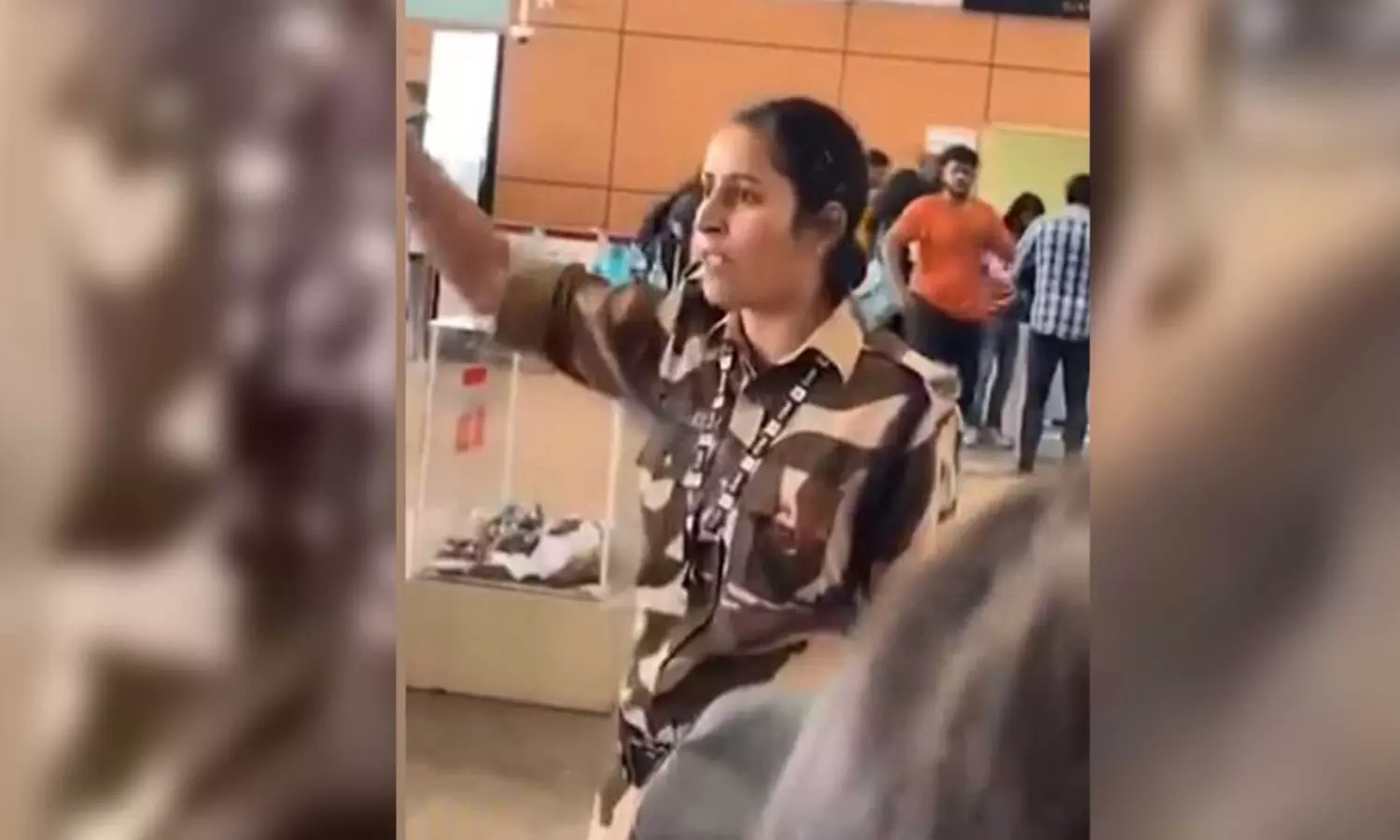 Image shows CISF lady constable who allegedly slapped Kangana Ranaut. (Photo/Screengrab from a viral video)