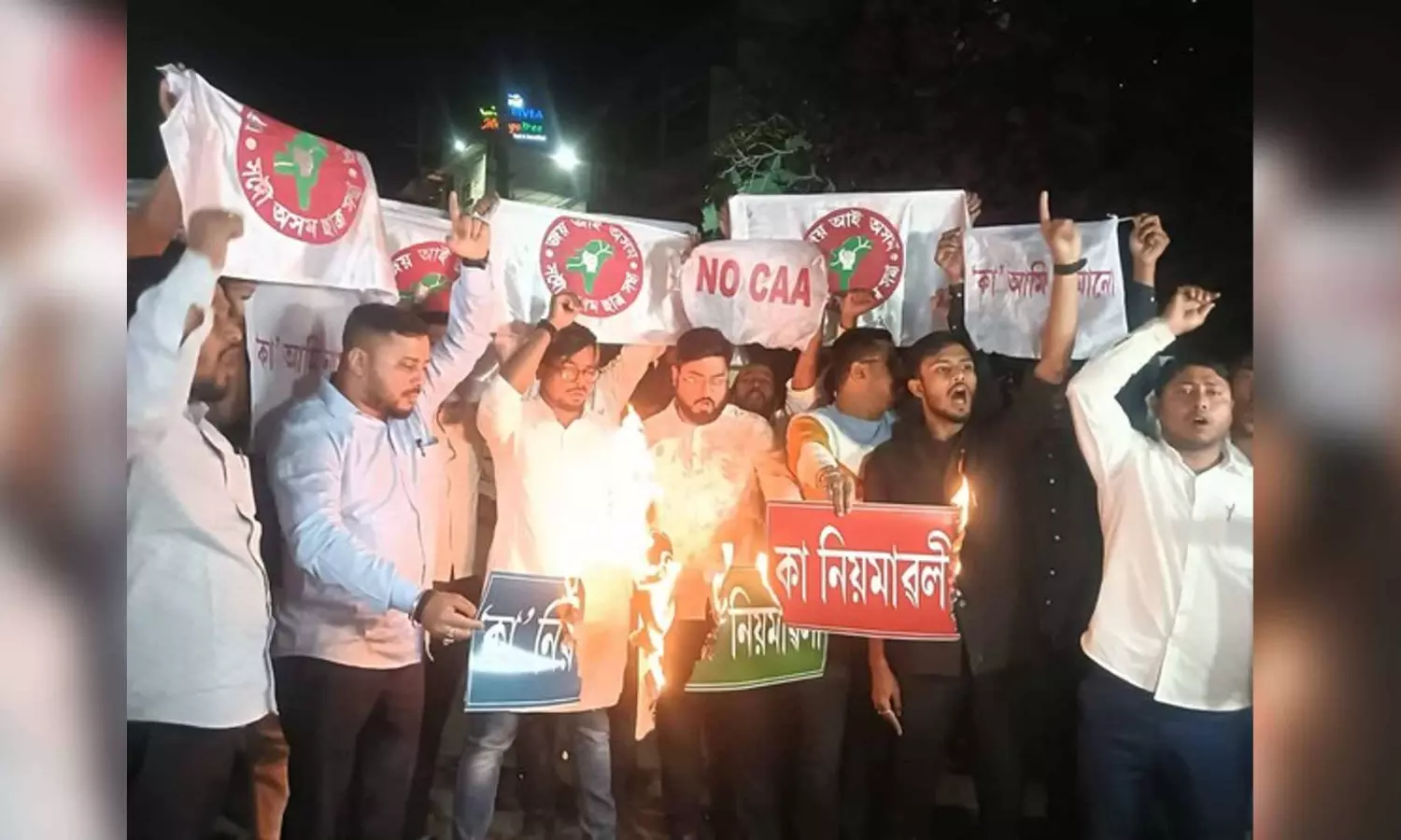 Meanwhile, All Assam Students' Union burned a copy of the CAA rules in Guwahati and other parts of the state on Monday evening, protesting against the Centre's move to implement the CAA.