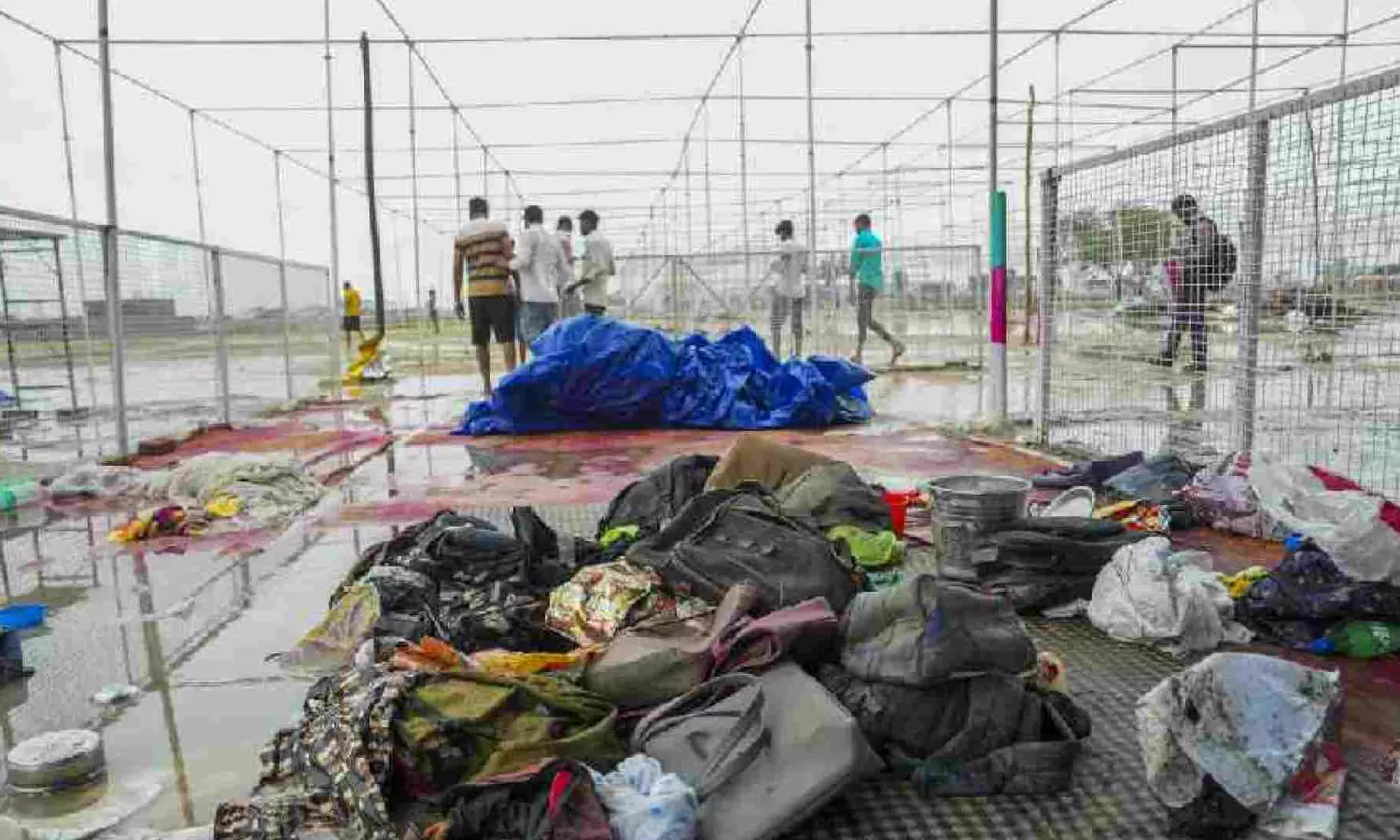 Bags and other belongings lying at the scene a day after a massive stampede that took place during a 'satsang' (religious congregation), in Sikandara Rao area in Hathras district (Photo/PTI)
