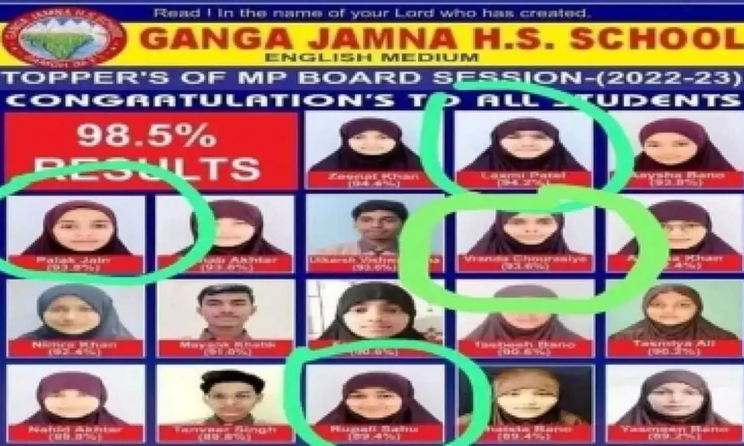 The row erupted after a poster of topper students of Ganga Jamna school in Damoh recently went viral on social media where all girl students including Hindus and Jains were seen wearing a head scarf.