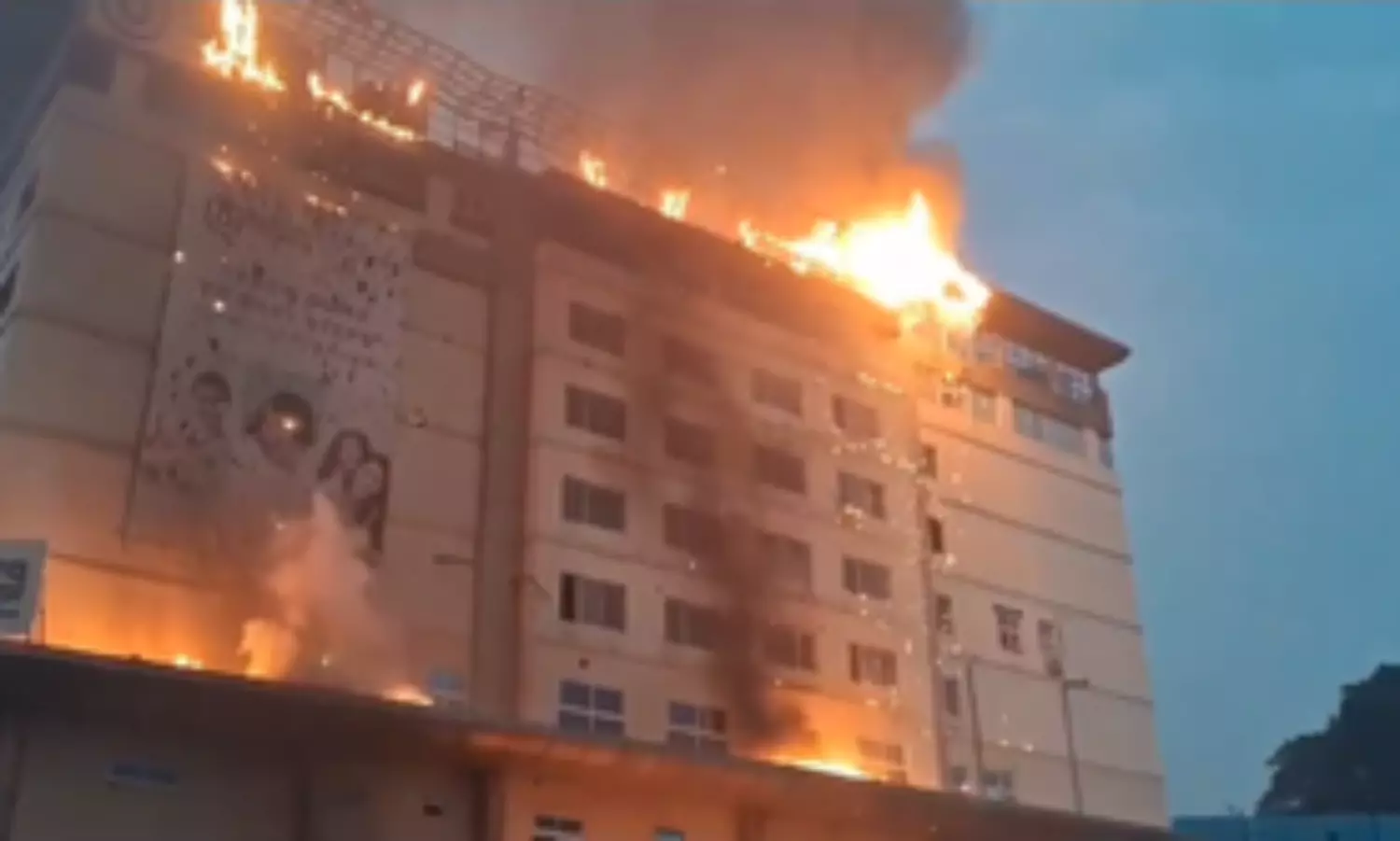 Huge flames engulfed the upper floor of the building. Four fire tenders and the Disaster Response Force (DRF) have been rushed to the scene.