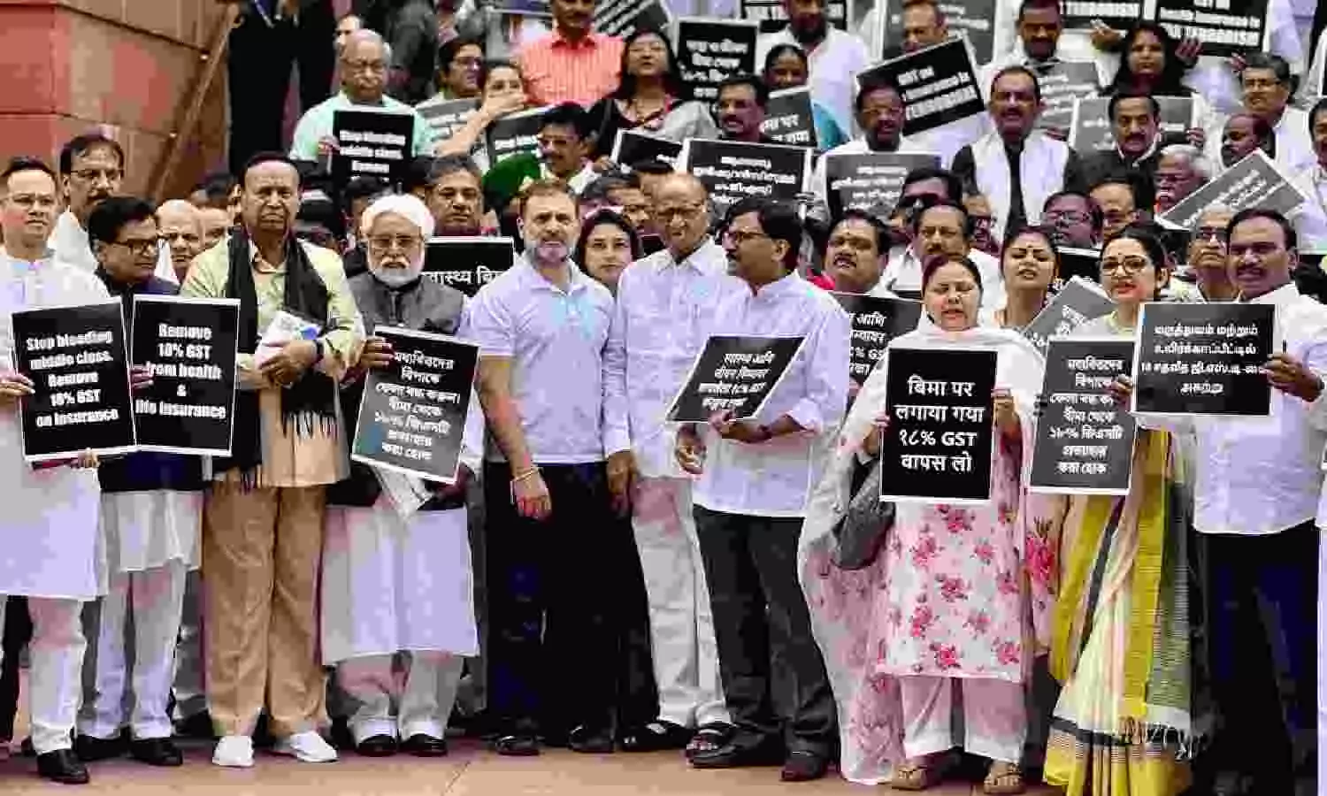 INDIA bloc parties protest against GST on health, life insurance premiums