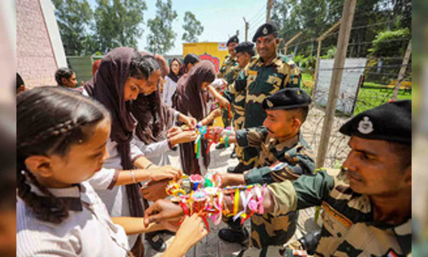 JAMMU: Army and paramilitary personnel stationed far away from home along the Line of Control (LoC) and International Border (IB) in Jammu region on Wednesday celebrated Raksha Bandhan as hundreds of schoolgirls and women tied them rakhis to mark the festival.