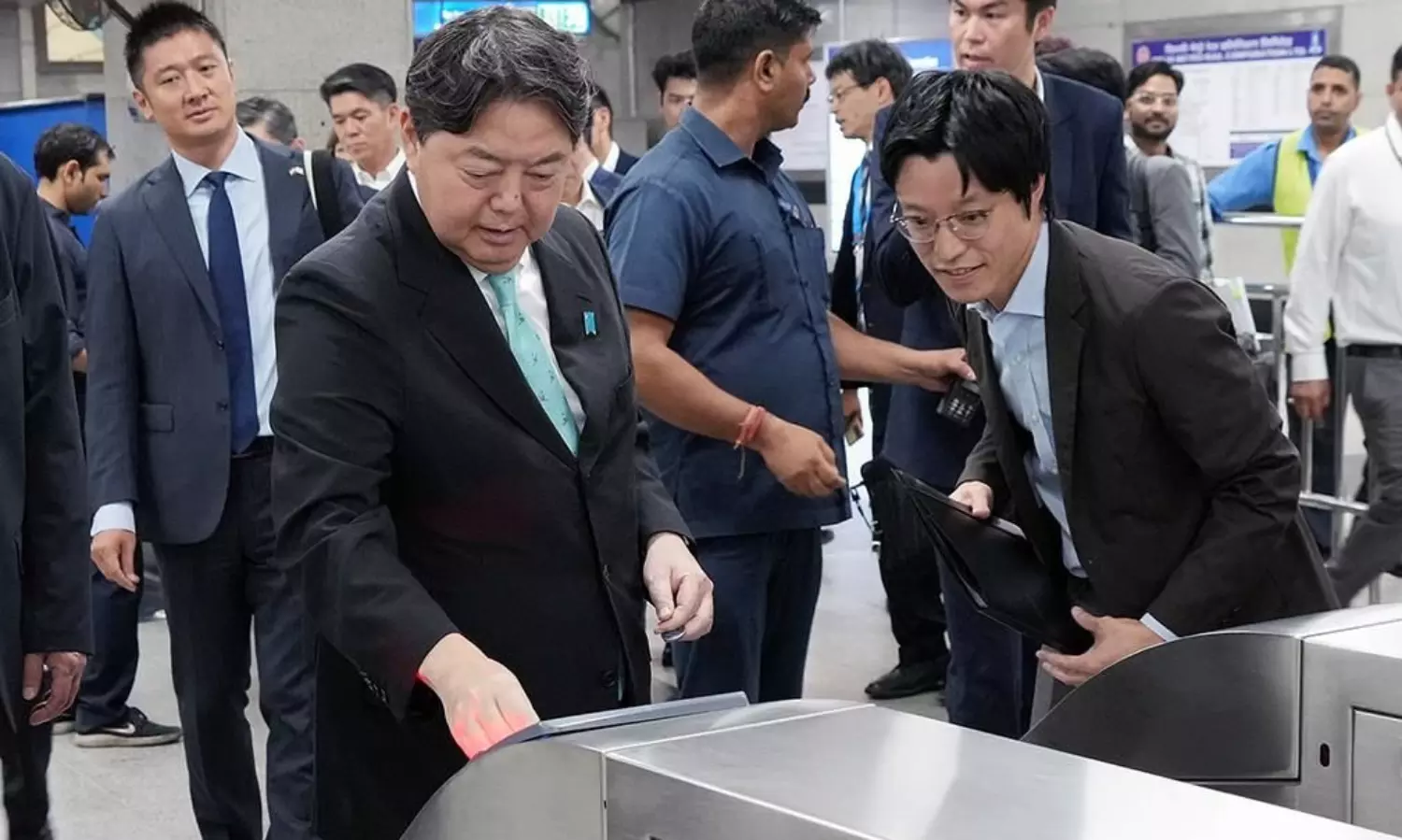 NEW DELHI: Japanese Foreign Minister Yoshimasa Hayashi, who is on his two-day visit to India, took a ride on Delhi metro on Friday.
