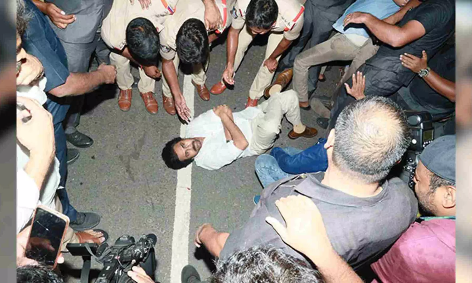 JSP chief Pawan lies down on road after being stopped at Andhra Border