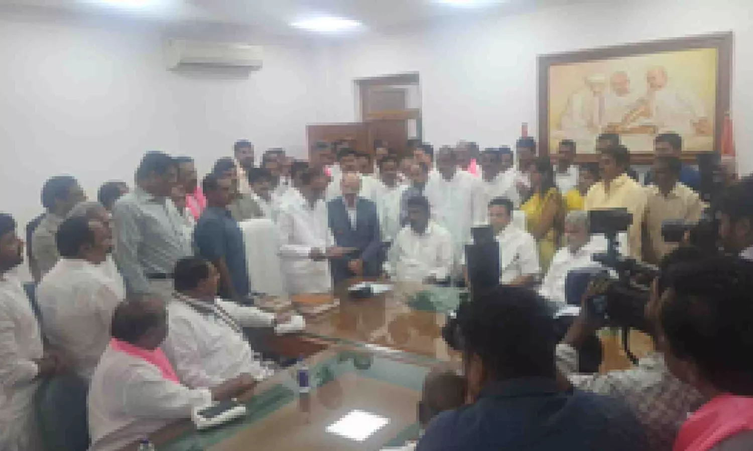 A large number of BRS leaders had gathered in Assembly premises to greet the BRS supremo.