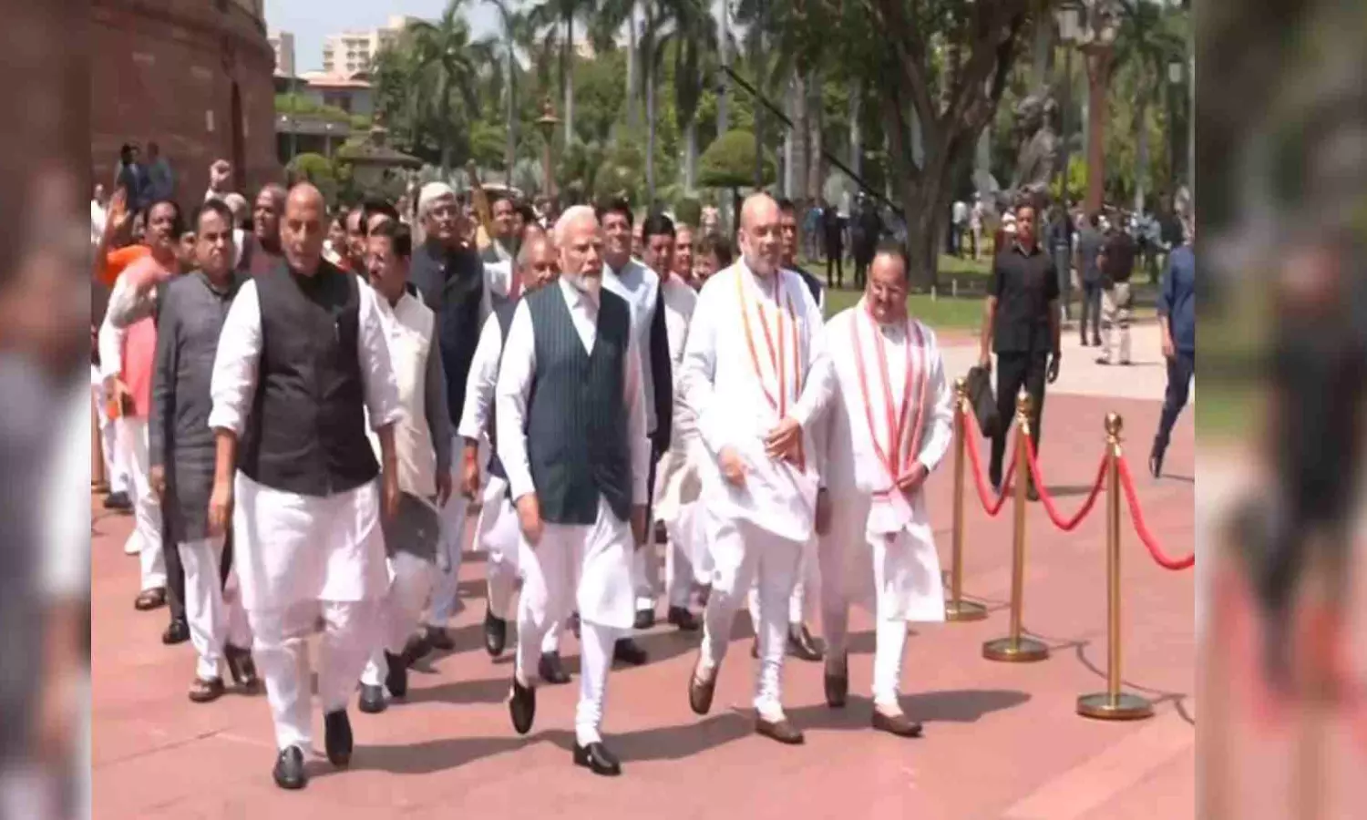NEW DELHI: Members of Parliament on Tuesday proceeded to the new Parliament building after bidding farewell to the old building. Prime Minister Narendra Modi addressed members of both Lok Sabha and Rajya Sabha at the Central Hall of the Old Parliament building after which he proceeded outside.