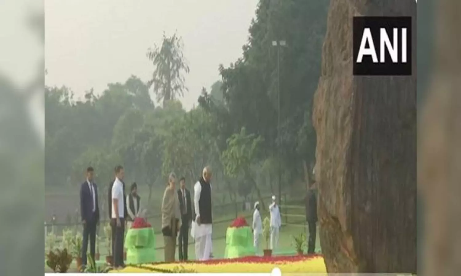 NEW DELHI: Congress leaders Sonia Gandhi, Rahul Gandhi, Mallikarjun Kharge, and KC Venugopal paid floral tributes to former Prime Minister Indira Gandhi on her 105th birth anniversary at Shakti Sthal in the national capital on Sunday. Posting from his official handle on X, the Congress president said Indira Gandhi displayed "skillful leadership and sacrificed everything for the country".