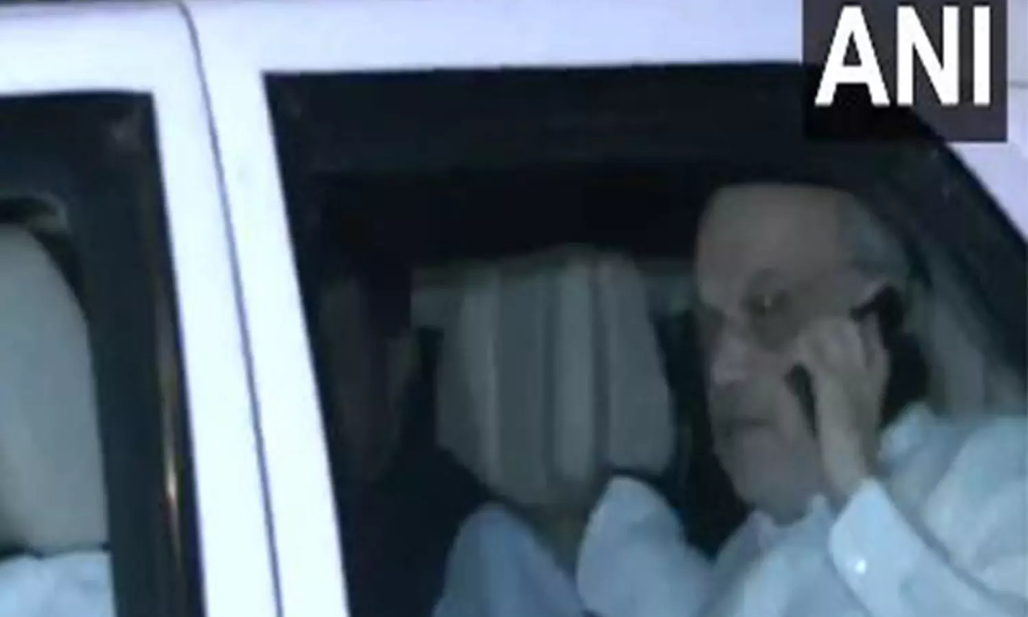 Home Minister Amit Shah leaves after meeting at BJP's Chief's residence in Delhi.