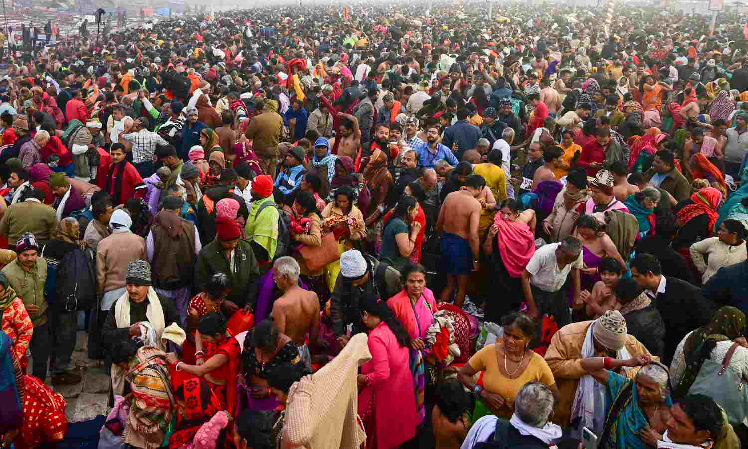 MAHAKUMBH NAGAR: The fog was thick, the cold intense and the waters freezing as the Maha Kumbh, the world’s largest gathering, began on Monday with tens of lakhs of people taking a dip in the Sangam in their quest for ‘moksha’ and the belief it will cleanse their sins.