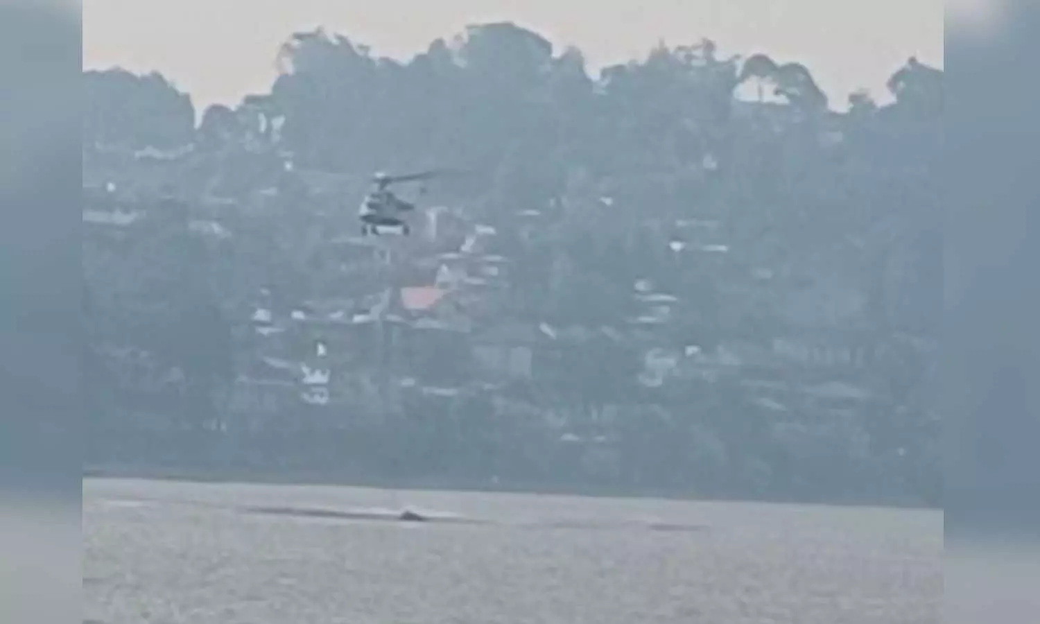 According to officials, the IAF choppers are lifting water from the nearby Bhimtal Lake in Nainital and spraying it in the area to contain and eventually put out the raging forest fire.