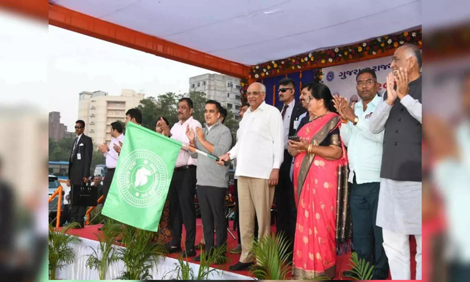 Gujarat Chief Minister Bhupendra Patel flagged 201 new GSRTC buses in Gandhinagar (Gujarat CM Twitter)