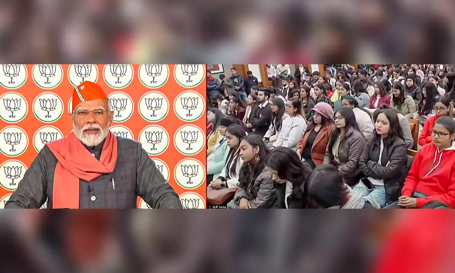 PM Narendra Modi interacts with first time voters at the 'Nav Matdata Sammelan' on Thursday. (PTI)