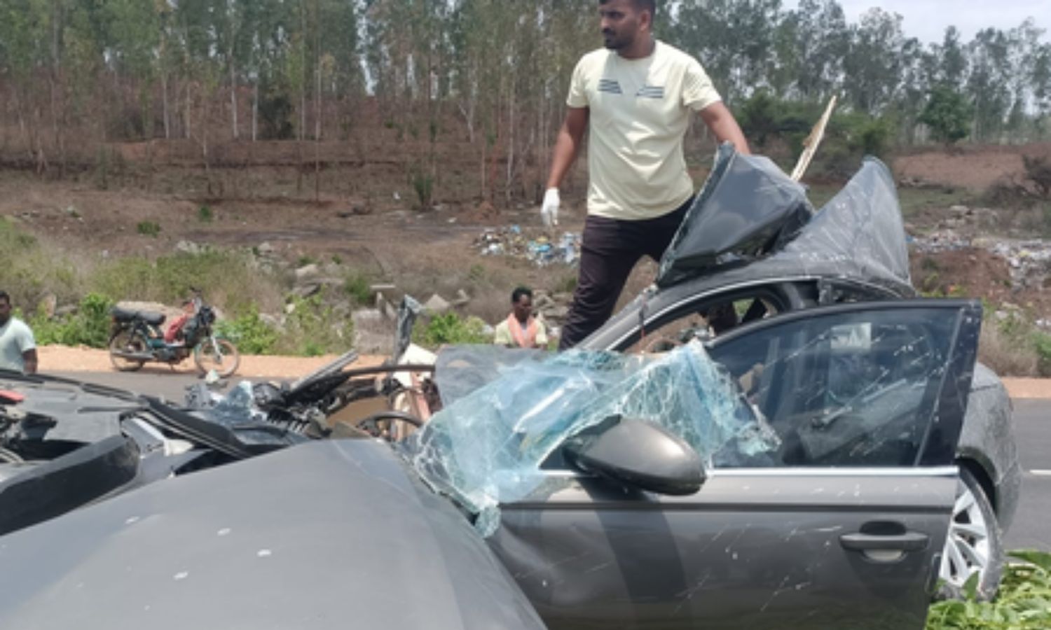 Preliminary investigations revealed that all the deceased were from the state of Haryana. The accident occurred near Motebennur village in Byadagi taluk on National Highway 48. The victims were travelling in an Audi A6 luxury car. Their identities are yet to be officially confirmed. Byadagi police rushed to the spot and are investigating the matter. The car was completely mangled due to the impact of the collision.