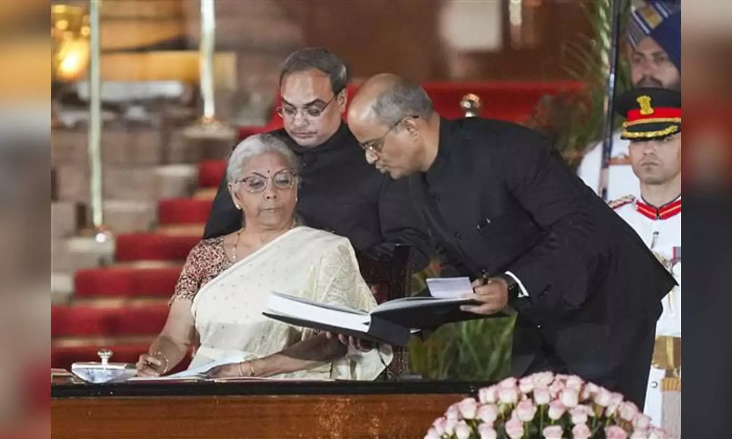 BJP MP Nirmala Sitharaman takes oath as minister during the swearing-in ceremony of new Union government, at Rashtrapati Bhavan in New Delhi, Sunday, June 9, 2024. (Photo/PTI)