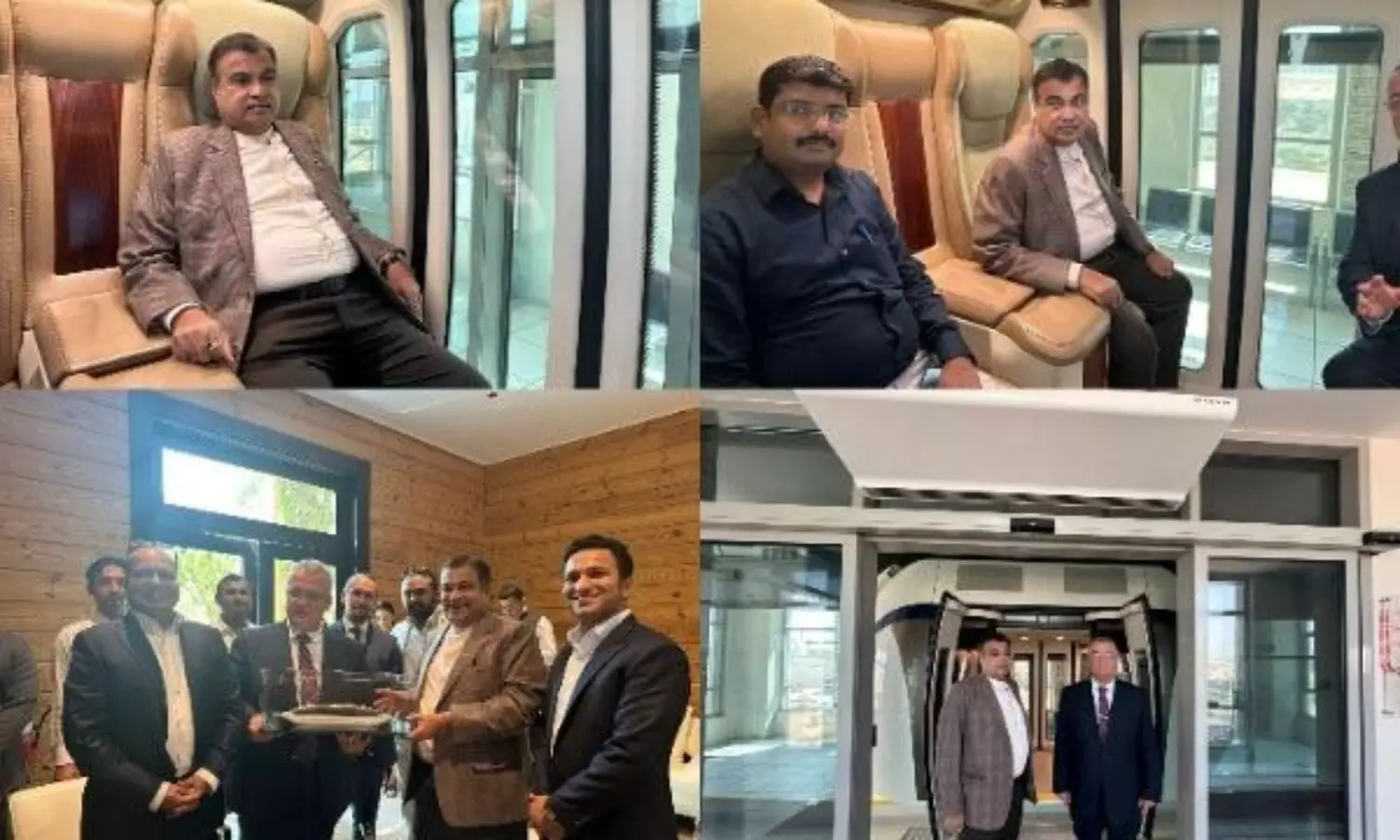 Nitin Gadkari took test ride of sky bus in Sharjah (Images: X/Nitin Gadkari)