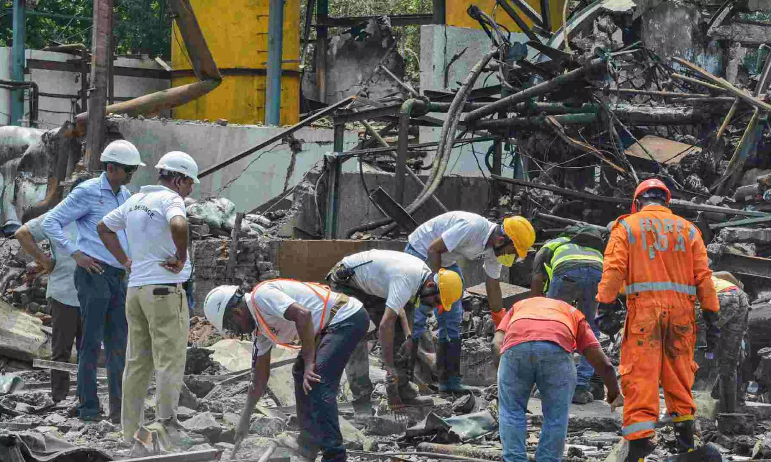 Thane: NDRF and other officials inside the chemical factory area at Dombivli where a blast on Thursday killed at least nine people and injured 60, in Thane district, Friday, May 24, 2024. (PTI Photo)