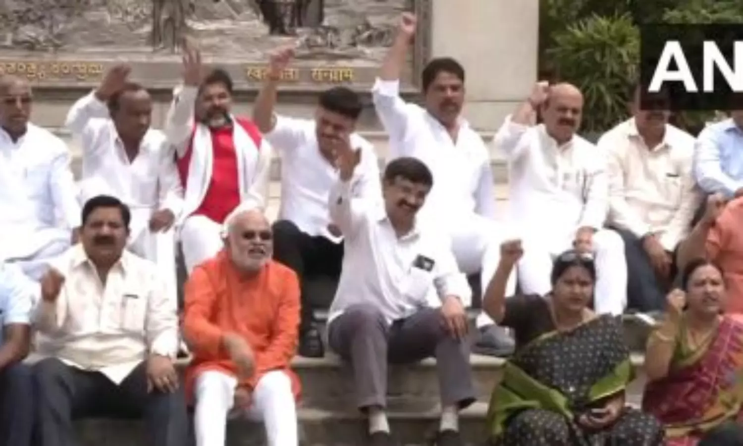 Led by former chief minister Basavaraj Bommai, the legislators sat near the statue and raised slogans against the ''deteriorating'' law and order situation in the state.